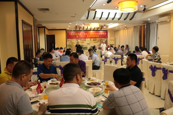本會訊 2018年7月20日18時,廣西河南商會,中共廣西河南商會黨支部在南寧市桃源路43號五千年大酒樓舉行《慶“八·一”建軍節座談會》。