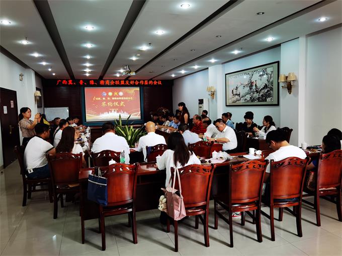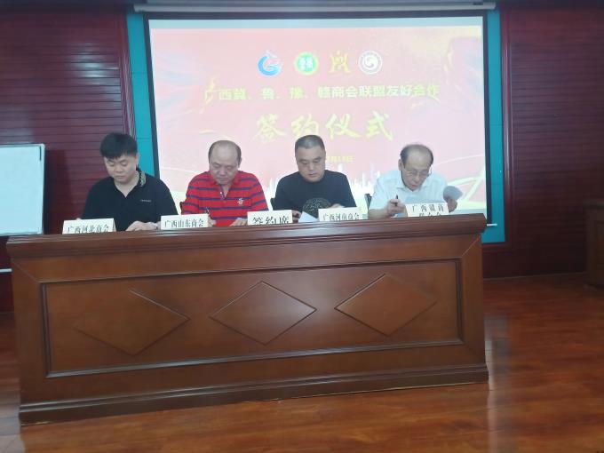 本會訊 2020年7月18日16時許,廣西冀、魯、豫、贛商會聯(lián)盟友好合作簽約儀式在南寧市科園大道44號恒川商務(wù)酒店三樓會議室舉行。自治區(qū)工商聯(lián)副主席葉俊茂、自治區(qū)司法廳人民參與和促進法治處處長梁和民、自治區(qū)工商聯(lián)法律部二級調(diào)研員王慧玲、廣西東盟技術(shù)轉(zhuǎn)移中心主任施敏等到會見證。本會會長寧長凌、監(jiān)事長徐洪寬、常務(wù)副會長姚東參、秘書長王宏等出席。
