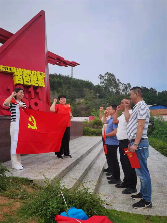 本會訊,6月23日,廣西河南商會黨支部“學黨史教育”活動在百色革命老區進行,此次活動是為慶祝建黨100周年組織的專題教育活動,黨支部書記杜華勇,組織委員劉偉,商會的其他黨員及入黨積極分子參加了活動。