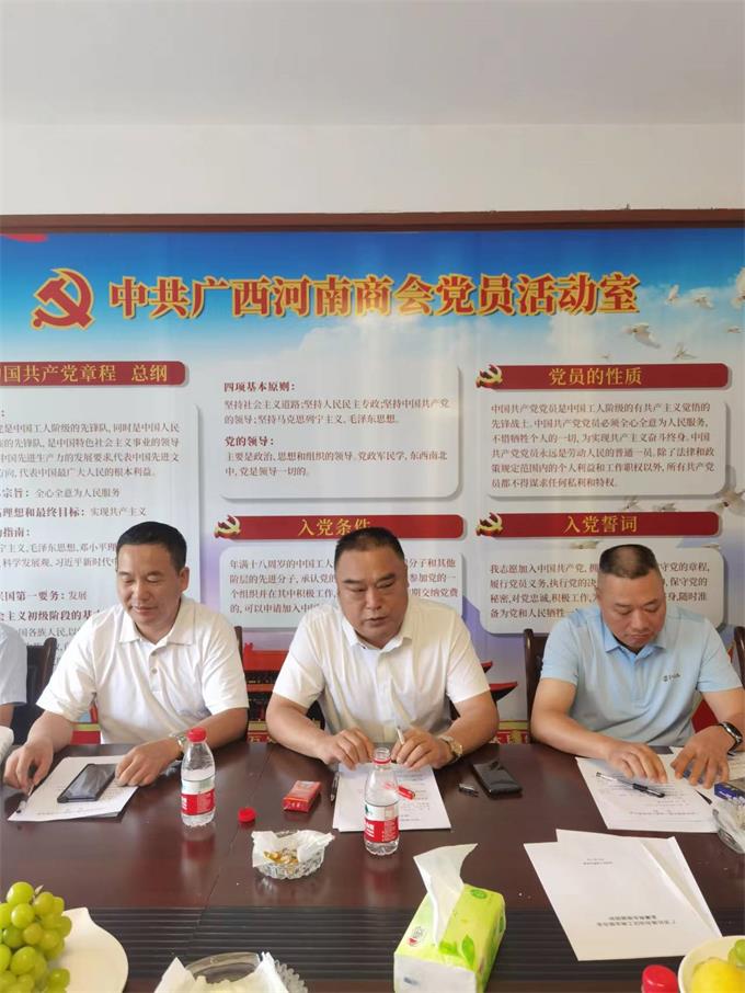 會議由廣西河南商會秘書長王宏主持。參加會議的有:廣西河南商會會長寧長凌;執行會長劉泉峰;監事長徐洪寬;常務副會長張志勇、婁曉寬、張合軍、姚東參;副會長趙廣永、吳海軍、王學勇、明磊、秦克政;理事陳圣良;廣西河南商會黨支部書記杜華勇等。
