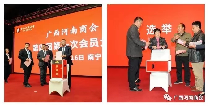 大會由副會長明磊主持。會議按照議程,先后審議通過了本會第三屆理事會工作報(bào)告、財(cái)務(wù)報(bào)告、監(jiān)事會工作報(bào)告、《廣西河南商會章程》修改草案、《廣西河南商會第四屆會員大會換屆選舉辦法》、《會費(fèi)標(biāo)準(zhǔn)及管理辦法》。緊接著選舉產(chǎn)生了理事會和監(jiān)事會。而后召開了本會第四屆理事會第一次會議,并按照《廣西河南商會第四屆會員大會換屆選舉辦法》,以無記名投票方式選岀了以劉泉峰為會長;徐洪寬為監(jiān)事長;姚東參、劉坤為執(zhí)行會長;婁曉寬、張強(qiáng)為常務(wù)副會長;29名副會長及劉坤為秘書長的本會新一屆領(lǐng)導(dǎo)班子。