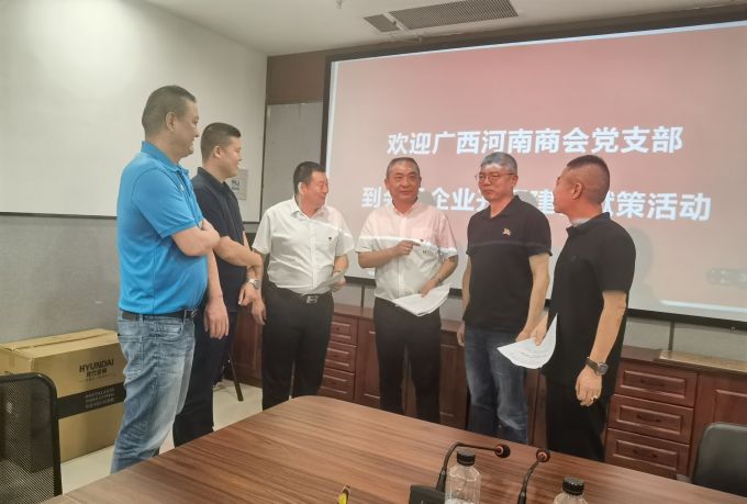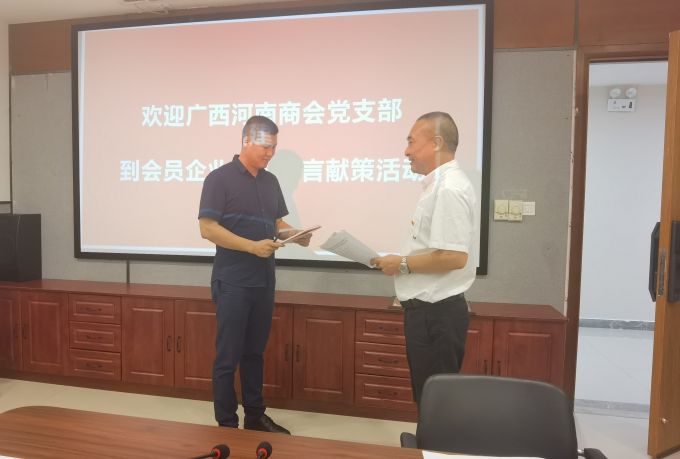 本會訊 讓會員單位為商會發展和黨支部建設“建言獻策”,是廣西河南商會開展系列走訪活動的一項重要內容。2023年10月27日上午,商會黨支部書記杜華勇帶領組織委員劉偉,副會長彭新文,入黨積極分子陳建黨和秘書處工作人員,前往本會副會長楊曉峰的企業——廣西程和程律師事務所和會員孫凱的企業——廣西凱歌智能科技有限公司進行走訪,聽取會員單位在商會發展和黨支部建設方面的建言與良策。
