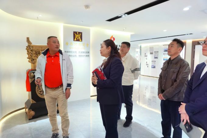 座談交流前,劉泉峰會長帶領李懿云副行長一行參觀了商會辦公環境、黨建活動室、接待室、展示廳等區域。