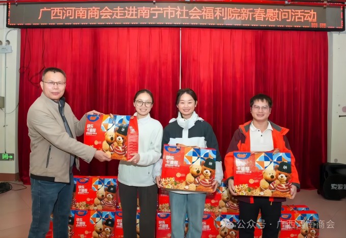 慰問團(tuán)團(tuán)長劉坤等代表廣西河南商會(huì),給孩子們送了一批節(jié)日禮包,副會(huì)長高杰代表廣西河南商會(huì),向福利院捐贈(zèng)了10000元現(xiàn)金。