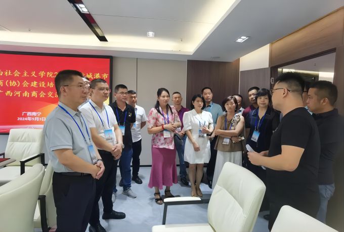 2024年9月3日下午,防城港市委統(tǒng)戰(zhàn)部常務(wù)副部長、市工商聯(lián)黨組書記、市二級巡視員許大儉、防城港市工商聯(lián)黨組成員、副主席毛劍玲、廣西社會主義學(xué)院非公有制經(jīng)濟(jì)教研部副教授朱列等,帶領(lǐng)防城港市基層商協(xié)會建設(shè)培訓(xùn)班一行60余人到廣西河南商會交流學(xué)習(xí)。