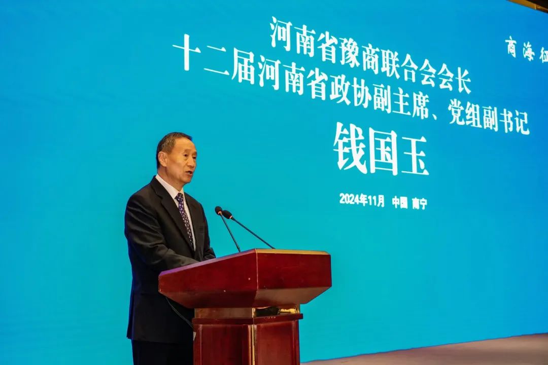 11月10日上午,由河南省豫商聯(lián)合會(huì)主辦、廣西河南商會(huì)承辦的2024海內(nèi)外豫商走進(jìn)東盟專場(chǎng)交流會(huì)在廣西南寧舉行,共享投資機(jī)遇、共謀合作發(fā)展。河南省委原常委、河南省委統(tǒng)戰(zhàn)部原部長(zhǎng)、十一屆河南省政協(xié)副主席史濟(jì)春,河南省豫商聯(lián)合會(huì)會(huì)長(zhǎng)、十二屆河南省政協(xié)副主席、黨組副書記錢國玉,柬埔寨駐南寧總領(lǐng)事館總領(lǐng)事唐肅安,老撾人民民主共和國駐南寧總領(lǐng)事館副領(lǐng)事提帕凱珊,廣西社會(huì)科學(xué)院東南亞研究所研究員雷小華,河南省僑聯(lián)黨組成員、副主席呂劍,廣西貿(mào)促會(huì)黨組成員、副會(huì)長(zhǎng)、中國—東盟商務(wù)與投資峰會(huì)秘書處副秘書長(zhǎng)劉樹義,河南省委統(tǒng)戰(zhàn)部,河南省人民政府駐北京辦事處、駐廣州辦事處等部門相關(guān)負(fù)責(zé)人,廣西—東盟經(jīng)濟(jì)技術(shù)開發(fā)區(qū)、中國—馬來西亞欽州產(chǎn)業(yè)園區(qū)負(fù)責(zé)人,新加坡、馬來西亞、印度尼西亞、菲律賓、老撾、柬埔寨、吉爾吉斯斯坦、瑞典河南商會(huì)(同鄉(xiāng)會(huì))會(huì)長(zhǎng),以及來自國內(nèi)各地河南商會(huì)會(huì)長(zhǎng)和豫商代表,廣西當(dāng)?shù)仄髽I(yè)代表,共500多人參加本次活動(dòng)。