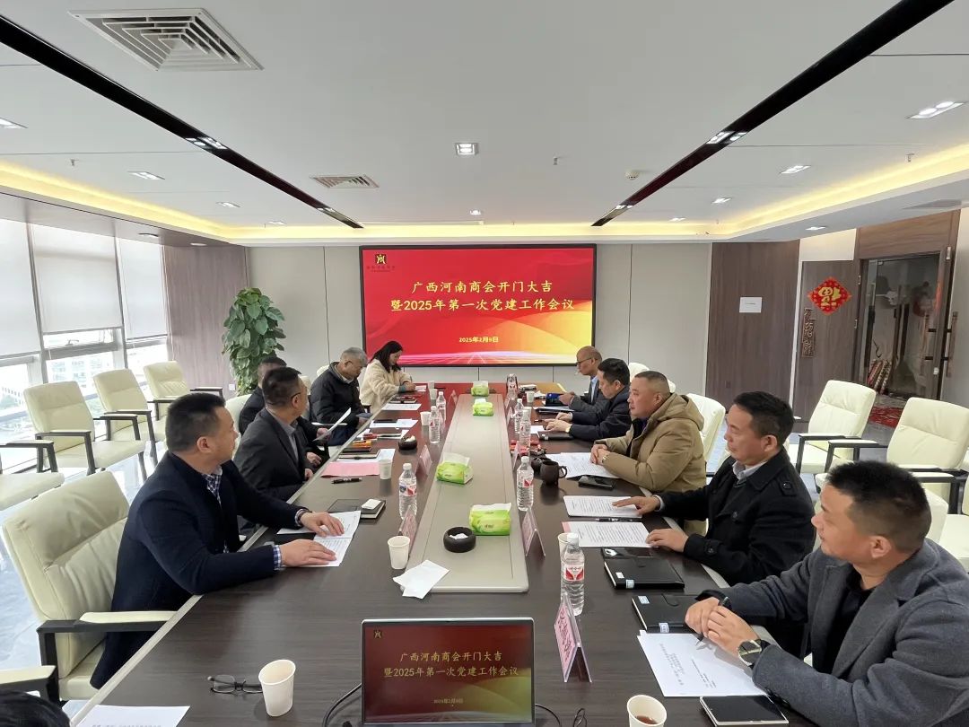 會長劉泉峰、執行會長(第二輪值會長組組長)姚東參,執行會長兼秘書長劉坤,常務副會長彭新文、張海濤,黨支部書記、副會長杜華勇,副會長史向陽、楊曉峰,理事邵國衛等出席新年第一次會長工作會議,支部黨員安貴全列席會議,監事長徐洪寬主持會議。會上,大家熱烈討論了《廣西河南商會2025年工作計劃》,就“實施六個聚集、推動六項重點”提出了許多富有建設性的修改補充意見。與會各位會長還認真審議并通過了《廣西河南商會與桂粵(深圳)產業合作發展有限公司戰略合作協議》《產業招商服務協議》。劉泉峰會長最后作總結講話,他高度肯定了過去一年商會取得的工作成績,對新一年工作提出了希望和要求。大家對新一年商會充滿信心,一致認為新年未過,商會就立即研究部署工作,行動快,效率高,決心大,希望商會班子更加奮發有為,積極履職,帶領全體會員同心同德,開拓創新,共同努力,把商會發展建設推向一個新的臺階。