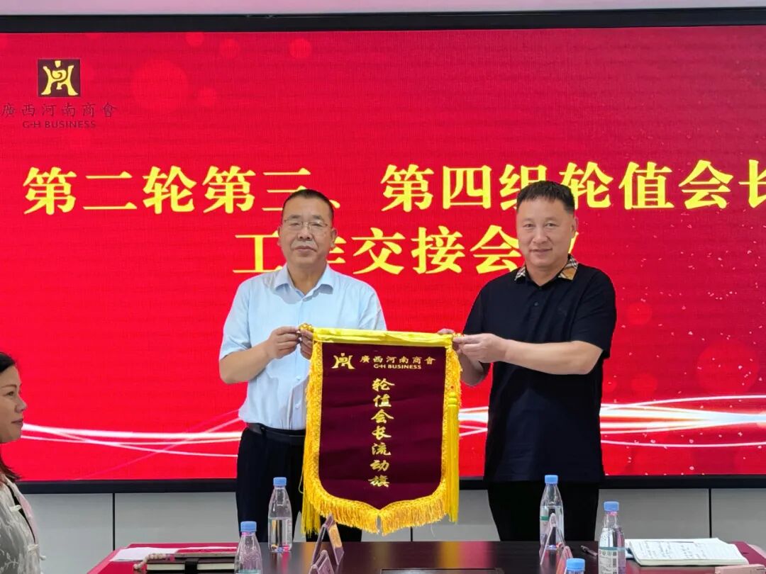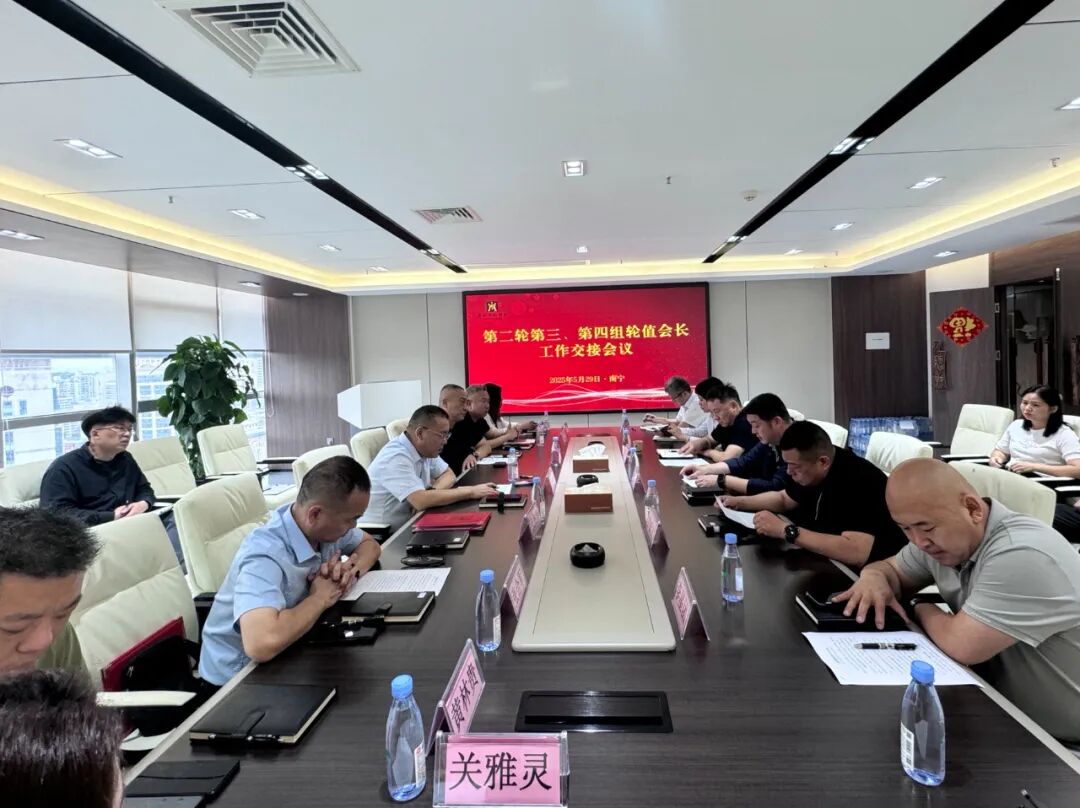 本會訊 5月29日上午,廣西河南商會召開第二輪第三、第四輪值會長組工作交接會。常務(wù)副會長彭新文、張海濤,支部書記(副會長)杜華勇,副會長劉繼雙、李星團(tuán)、張合軍、焦波、黃林貴、關(guān)亞玲以及第三、第四輪值會長組各位成員,黨支部部分黨員出席會議,特邀中國銀行自貿(mào)區(qū)支行副行長梅濤、邕寧支行行長周松鳴參加會議。會議由執(zhí)行會長兼秘書長、第三輪值會長組組長劉坤主持。
