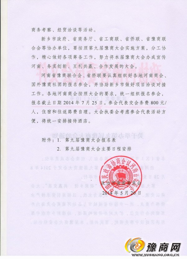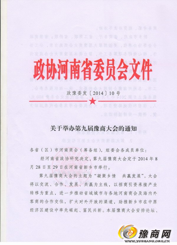 經河南省政協研究決定,第九屆豫商大會定于2014年8月28日至29日在河南省新鄉市舉行。