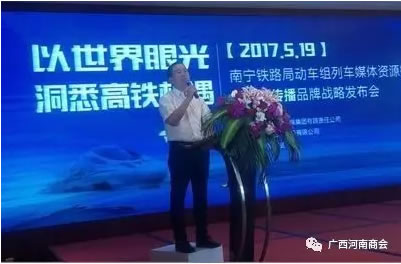 本會訊 5月19日15時,由廣西河南商會、廣西鐵路旅游傳媒集團、廣西高鐵商旅有限責任公司聯合舉辦的,《以世界眼光洞悉高鐵機遇——南寧鐵路局動車/高鐵列車媒體資源推介暨全域傳播品牌戰略發布會》在南寧市雙擁路南湖名都國際大酒店49樓凌云廳隆重舉行。來自南寧鐵路局、本會會員單位、各商協會、金融行業、新聞媒體等單位和企業代表及部份河南老鄉共400余人到會。