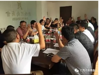 選岀候選人后,會議表決通過了《廣西河南商會章程》修改(草案二),并擬定了召開會員大會的時間,列岀了第三屆換屆工作會員大會的議程。