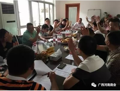 本會訊 2017年7月9日15時30分,廣西河南商會第二屆第七次理事大會在本會辦公室順利舉行,本會有理事成員25名,實際到會21名。會議采用舉手表決的方式,選岀寧長凌,劉泉峰,徐洪寬分別為廣西河南商會第三屆會長,執行會長,監事長候選人。